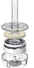 Es gibt biOrb-Besitzer, die gar nicht wissen, was der Ausströmerstein ist und wo dieser sitzt. Er sitzt unter dem Filter (siehe oben links) und sorgt dafür, dass kleine Blubber-Blasen aus der Luftsäule strömen. Er ist aus dünnem keramischen Material und zerstäubt die von unten hereingepumpte Luft.
